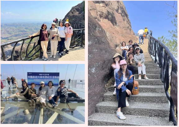 山勢陡峭而險(xiǎn)峻,山上峭壁錯(cuò)列,怪石嶙峋,巨石斜聳突兀似牛角,順南或北的險(xiǎn)徑攀援而上,時(shí)而令人頭暈?zāi)垦?,時(shí)而令人心驚膽顫。娘子軍們氣定神閑、鼓舞加油,順利通過“玻璃棧道”、“玻璃大橋”等懸崖景點(diǎn),完成石牛寨一小步,征服內(nèi)心一大步。充分展現(xiàn)出長沙市政女職工激情拼搏、團(tuán)結(jié)協(xié)作的精神風(fēng)貌。